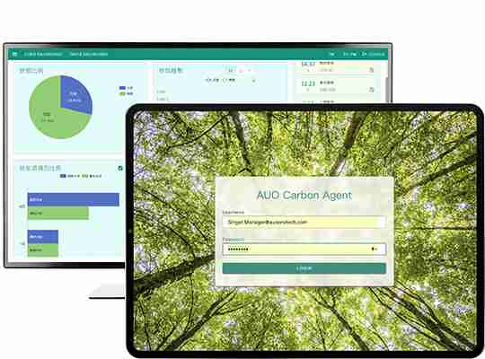 依循 ISO 国际标准建置出符合国际标准的全方位碳管理平台 (AUO Carbon Agent),,其中温室气体盘查模组可协助客户将组织、、产品与供应链的碳排放源数据,,,透过系统内建的系数资料库自动计算出碳排量,,提升整体盘查作业的效率,,,,并以此拟定长期减碳策略,,,,达到低碳转型、、、净零碳排的目标。。