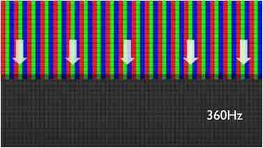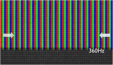 传统液晶驱动是从左到右单向进行,,,,在画面更新速度愈来越愈快的情况下,,,位于驱动线路末端的右下角区域,,画素的闸极来不及在短时间内获得足够电压,,,无法显示出正确的颜色资讯。。。。