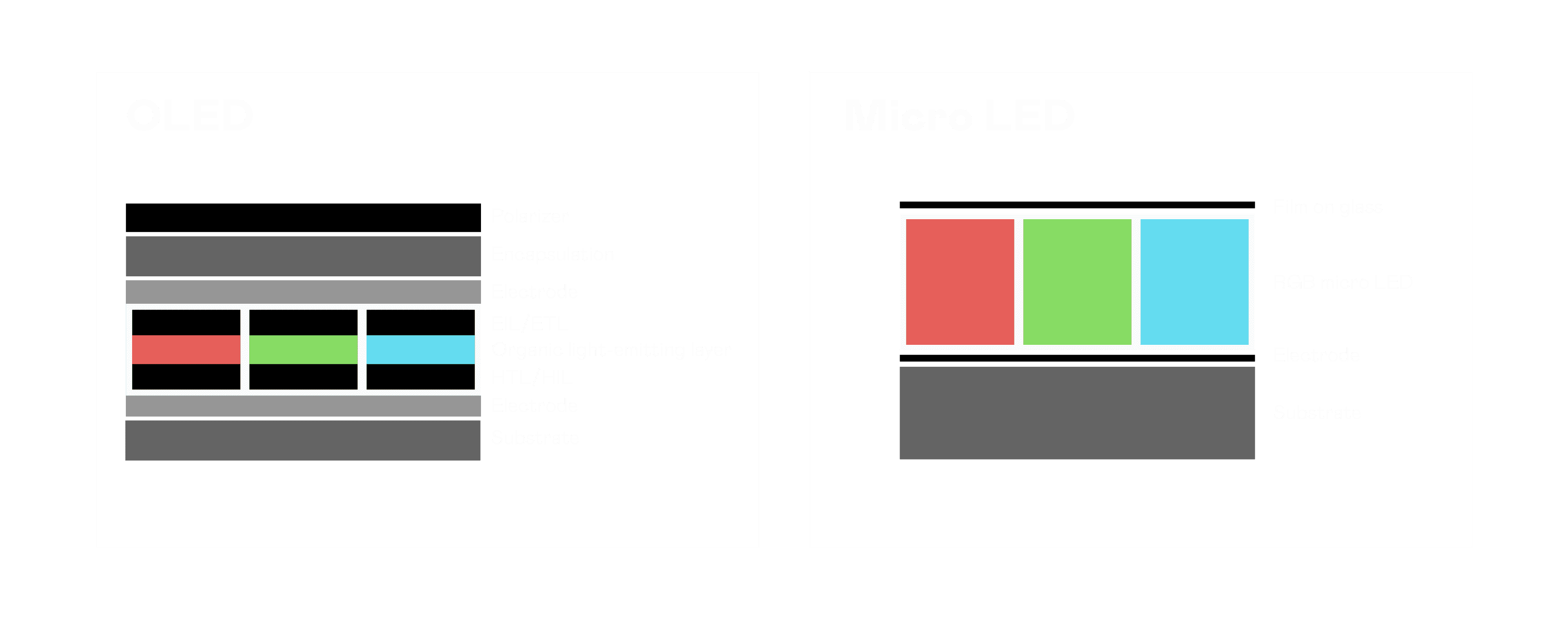 以 LED 做为显示画素,,可让 LED 的发光效率发挥到极致,,,,从而让显示器具备优异的亮度表现,,不论是在户外或室内,,,,均具备出众的显示效果。。。同时,,与使用有机材料的 OLED 相比,,,,LED 具备更稳定、、、、寿命更长的特性,,,,不仅不会有画面烙印问题,,,而且更不容易出现故障、、、坏点。。。