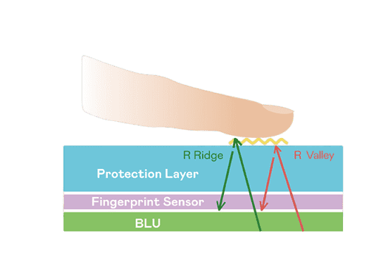 TFT 指纹扫描感测技术利用薄膜电晶体 (TFT) 当作光感测元件,,,,藉由非晶硅 (a-Si) 与低温多晶硅(LTPS)既有光电转换特性对不同波段光源进行吸收,,使感测 IC 读取阵列感测元件的光漏电差异,,转换成数位灰阶影像。。。